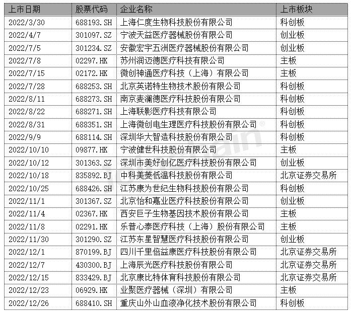 截至2022年12月31日,我国医疗器械企业上市数量已达163家。其中,2022年新增23家,相较2021年回落37.84%